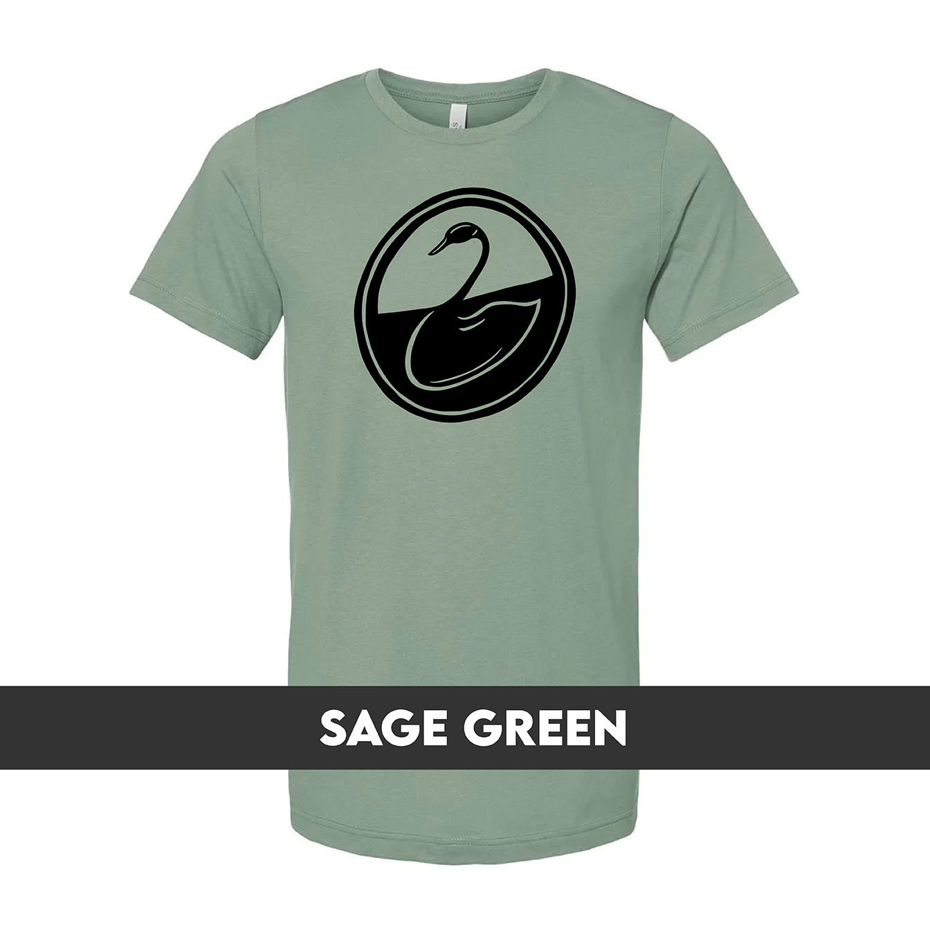 The Black Swan Network logo screen printed in black ink on pre-shrunk, 100% cotton t-shirt. Logo is printed approximately 9 inches tall. Nothing printed on back.